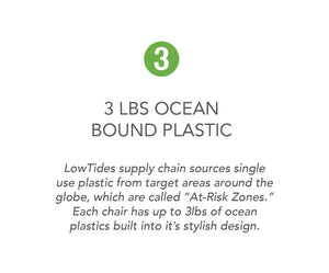 We're bringing colorful nautical designs to life with our LowTides x Thomas Paul Dune Tall Beach Chair in Seahorse Vineyard, made with REPREVE® water and stain resistant fabric. Each stylish beach chair is made with 100% aluminum, upcycled ocean plastic armrests and kick plate. The seat and back are made from REPREVE® high-quality fibers of 100% recycled materials. Using recycled materials in our products makes every single story and product unique in its ocean origin, look, and feel.
